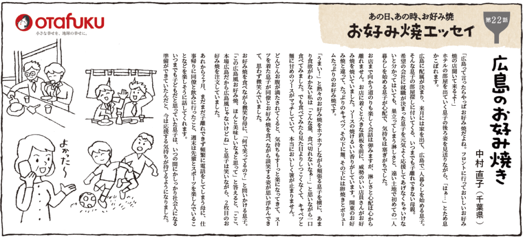 中国新聞広告賞 準グランプリ オタフクソース様エッセイ「あの日、あの時、お好み焼」